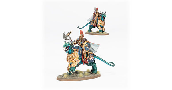 Born into the Stormcast Eternals as a natural leader, extraordinarily gifted with the talent of leadership, the Lord-Celestants are notable for their stoic tenacity and fighting ability. On foot, they are virtually unmatched – atop a vicious Dracoth, they become capable of dealing absolutely astonishing damage, combining the lightning-spitting fury of the Dracoth with their tempestos hammers and thunderaxes.