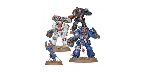 This versatile kit includes a teleport homer on its own base, and offers plenty of cosmetic choices to customise your Terminators – interchangeable fist and gun arms, purity seals and battle honours, decorated tassets, a variety of tilting plates for the Sergeant, and enough bare heads or helmets for your whole squad.