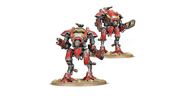 – Armiger Warglaive, armed with thermal spear, reaper chain-cleaver, and either a Questoris heavy stubber or meltagun
